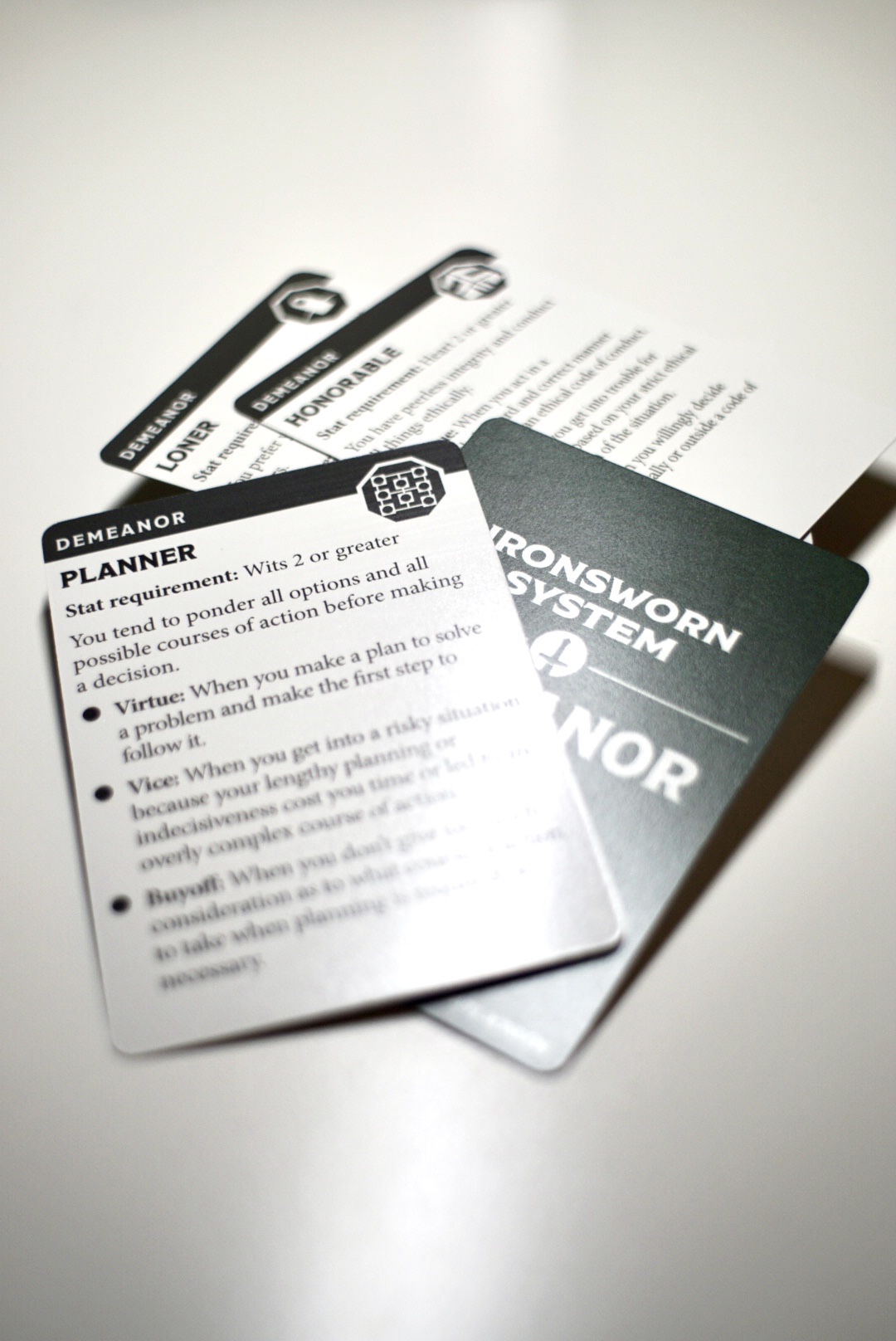 Set of cards to denote your character’s personality and be mechanically rewarded by playing them in fiction.